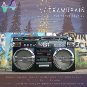 Todos los jueves a las 7 pm nos encontraremos a conversar junto a nuestros interesantes entrevistados del territorio sobre Arte, Economía Circular, Buen Vivir y Educación. Trawupaiñ es un programa traído a ustedes gracias a la colaboración de La Casa Imaginaria, Que Llueva Café, Gruta Audiovisuales & Rey Volcán